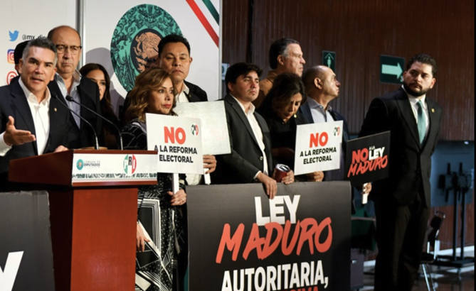 En representación de la Red Jóvenes X México, Mancilla acompañó el posicionamiento encabezado por el presidente nacional del PRI, Alejandro Moreno, en el que el partido reiteró su rechazo a la iniciativa al considerar que pone en riesgo el equilibrio democrático del país.